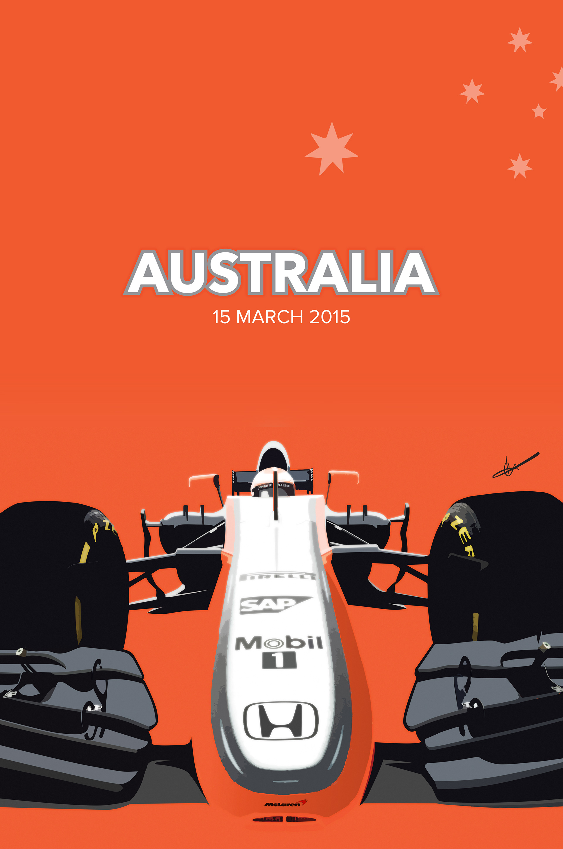 Poster Concepts for the Formula One Grand Prix in Melbourne, Australia 15 March 2015 featuring the 2015 McLaren Honda.